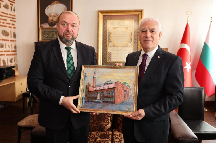 BURSA (İGFA) - Batı Trakya bölgesindeki ziyaretlerin ardından Bulgaristan’a geçen Bursa Büyükşehir Belediye Başkanı Mustafa Bozbey, Filibe Başkonsolosu Emre Manav, Filibe Belediye Başkanvekili Hakkı Sakabov ve Filibe Müftüsü Taner Veli’yle bir araya geldi.