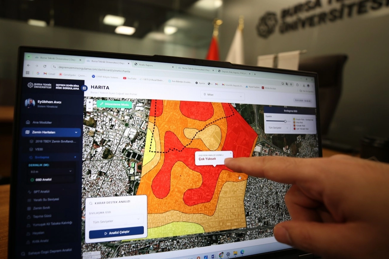 BTÜ Mühendislik ve Doğa Bilimleri Fakültesi İnşaat Mühendisliği Bölümü Öğretim Üyesi Prof. Dr. Eyübhan Avcı, Kahramanmaraş depremlerinde hasar gören 3 binden fazla binayı inceleyerek farklı zemin türlerinden elde edilen verilerle Bursa’nın risk haritasını oluşturduklarını açıkladı. Prof. Dr. Avcı, “Bu yazılım, kamu kurumları ve vatandaşların erişimine açık olarak tasarlandı. Zemin sıvılaşması, heyelan riski ve bina hasar durumu gibi net bilgiler sunuyor. Belediyeler bu verilerle ruhsat ve planlama süreçlerinde sağlıklı kararlar alabilecek” dedi.