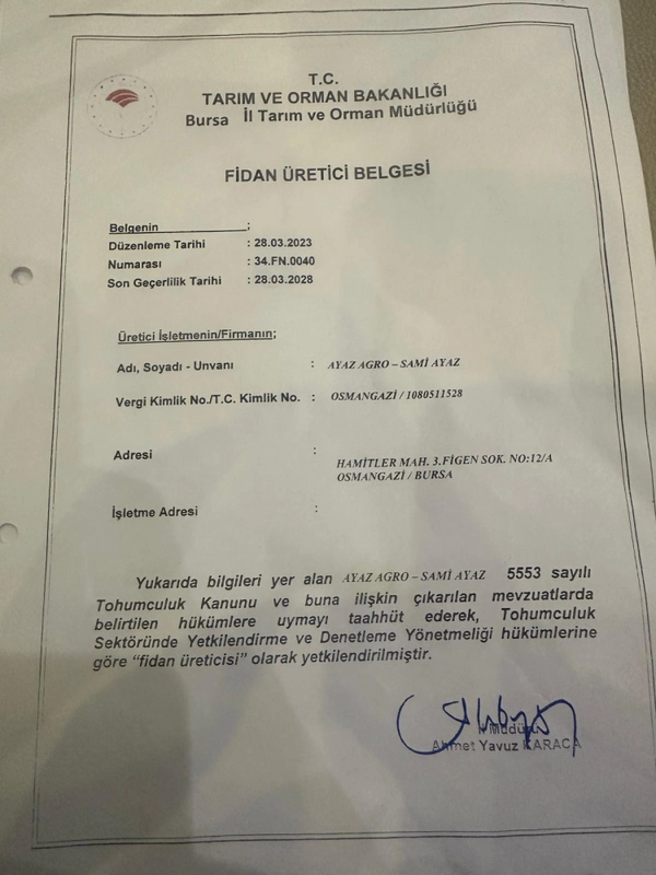 ‎‎Külcü’nün açıklamalarına göre fFide alımında kullanılan “Fidan Üreticisi Belgesi”nin sahte olduğu,