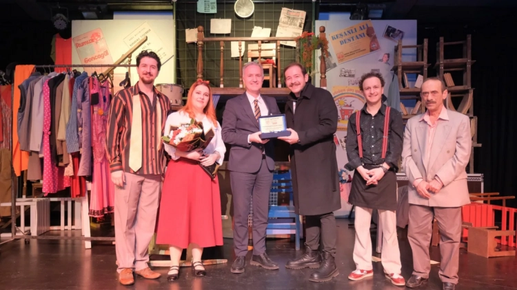 Başkan Taban, konuşma sonrası Ordu Büyükşehir Belediyesi Şehir Tiyatroları ekibine gecenin ve festivalin anısına hediye takdimi gerçekleştirdi.