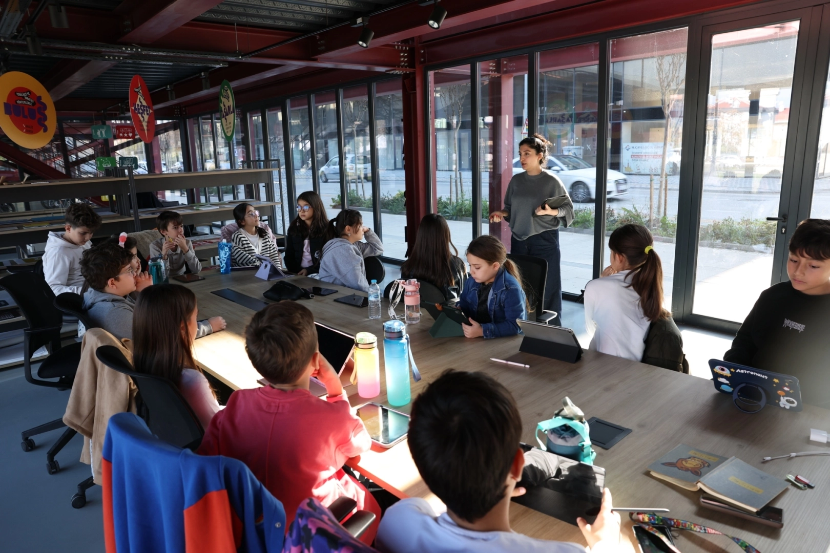 Çocuklar, atölye boyunca Sketchbook programını kullanarak tabletleri ve tablet kalemleriyle keyifli bir dijital sanat deneyimi yaşadı.
