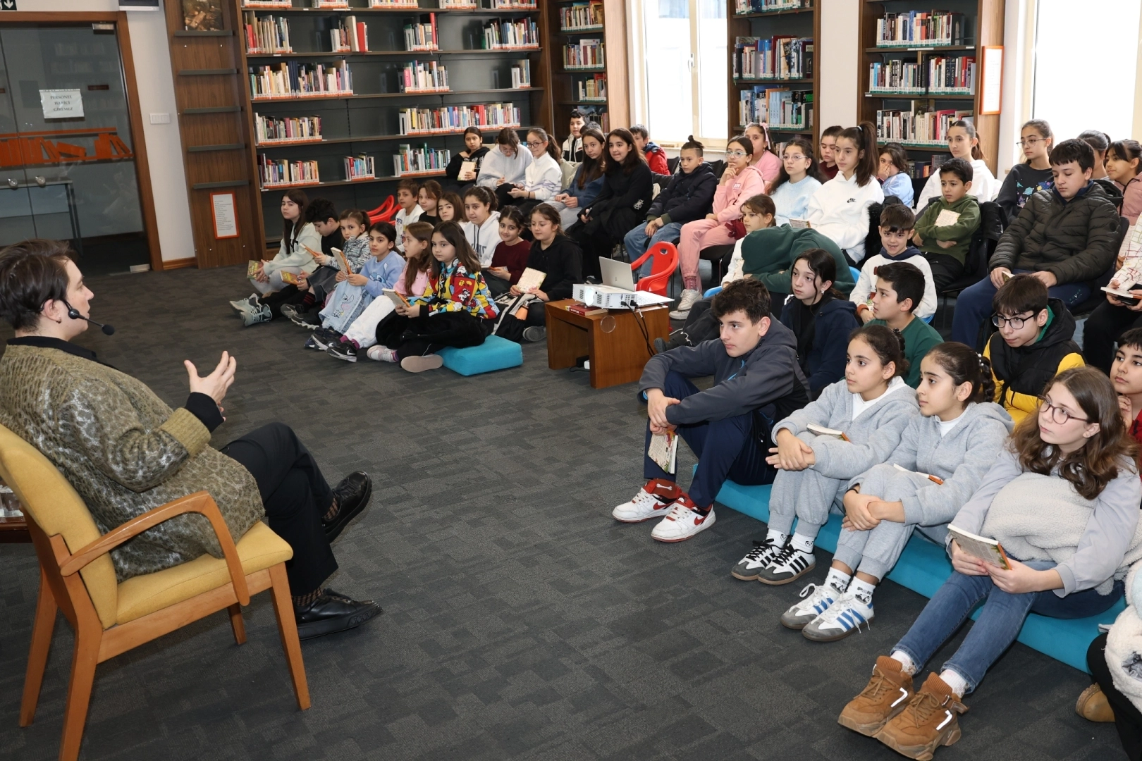 Söyleşinin sonunda çocukların sorularını içtenlikle yanıtlayan Burcu Aktaş, günün anısına kitaplarını imzaladı.
