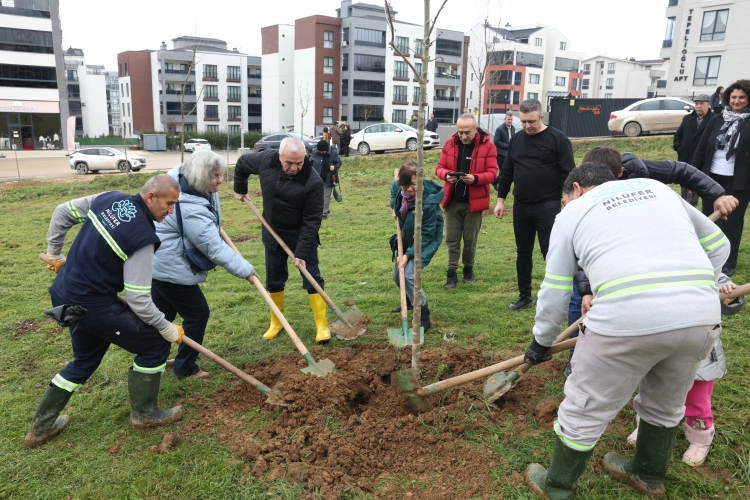 Nilüfer Belediye Başkanı Şadi Özdemir’in de katıldığı çalışmada, fidanlar mahalle sakinleriyle birlikte toprakla buluşturuldu. Başkan Özdemir, küreği eline alarak mahalle halkıyla birlikte dikim çalışmasına katıldı. Muhtar Azası İsmail Osmanoğlu ve Mahalle Temsilcisi Şakir Öner Tüle’nin de yer aldığı ağaçlandırma çalışması, mahalledeki dayanışma ruhunu bir kez daha ortaya koydu.