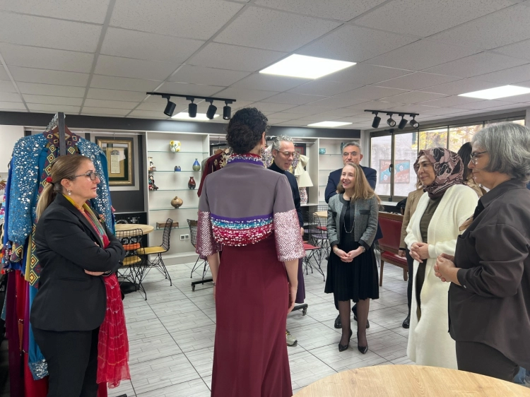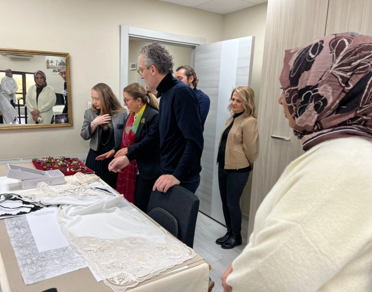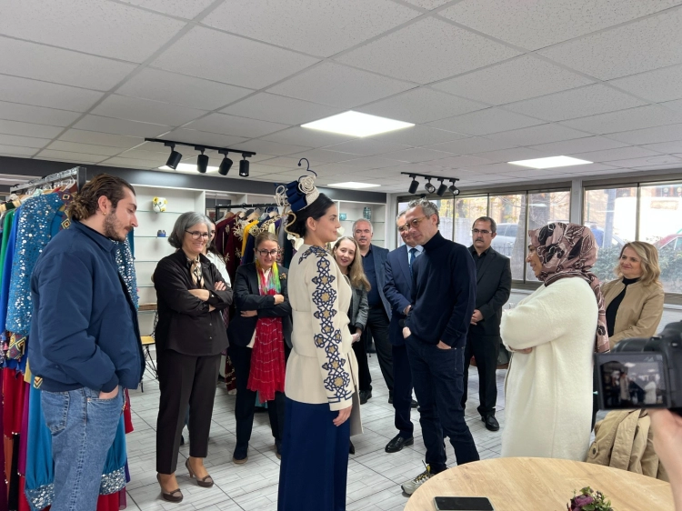 Ünlü modacı Özgür Masur, Türk kültürünün önemli unsurlarını oluşturan geleneksel sanatlar, giyim-kuşam kültürü ve mutfak kültürünün aslına uygun şekilde araştırılıp arşivlendiği üretim atölyelerinde incelemelerde bulundu.