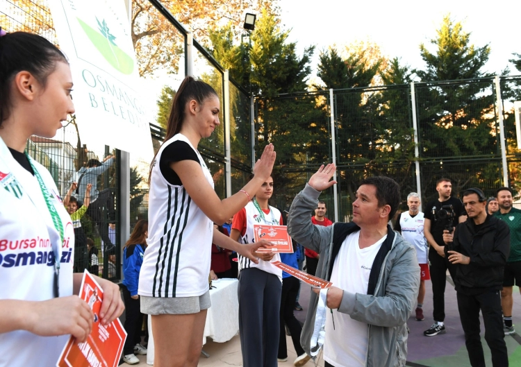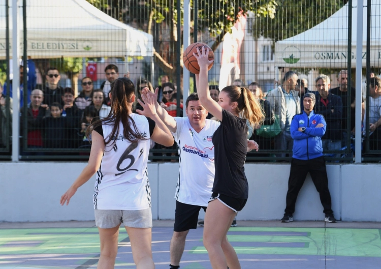 BURSA (İGFA) - Bursa'da Osmangazi Belediyesi, 29 Ekim Cumhuriyet Bayramı etkinlikleri kapsamında 3x3 Basketbol Turnuvası düzenledi. Düzenlenen turnuvada Osmangazi Belediye Başkanı Erkan Aydın’ın takımı ile Bursaspor Basketbol Takımı gösteri maçı yaptı.