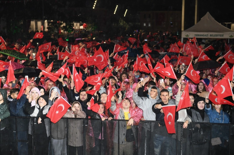 Bursa'da Osmangazi Belediyesi, 29 Ekim Cumhuriyet Bayramı kutlamaları kapsamında muhteşem bir konsere ev sahipliği yaptı. Osmangazi Meydanı’nda düzenlenen konserde sahne alan Zeynep Bastık, yağmura rağmen seslendirdiği şarkılarla Bursalıların içini ısıttı.