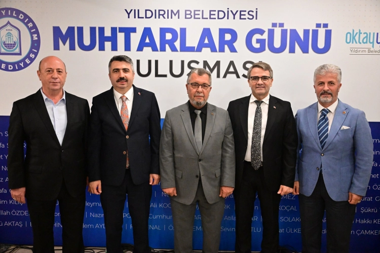 Bursa'da Yıldırım Belediye Başkanı Oktay Yılmaz, 19 Ekim ‘Muhtarlar Günü’ dolayısıyla ilçedeki mahalle muhtarları ile bir araya geldi.
