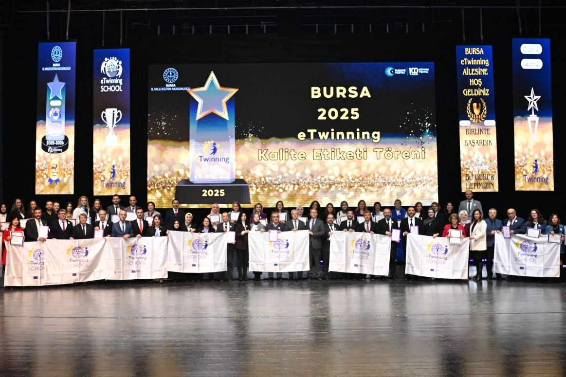 Bursa'da düzenlenen eTwinning Okul Etiketi ve Kalite Etiketi Belge Takdim Töreni'nde, 122 okulun yöneticisine ödül verilirken 700 öğretmene de kalite etiketi belgeleri takdim edildi.