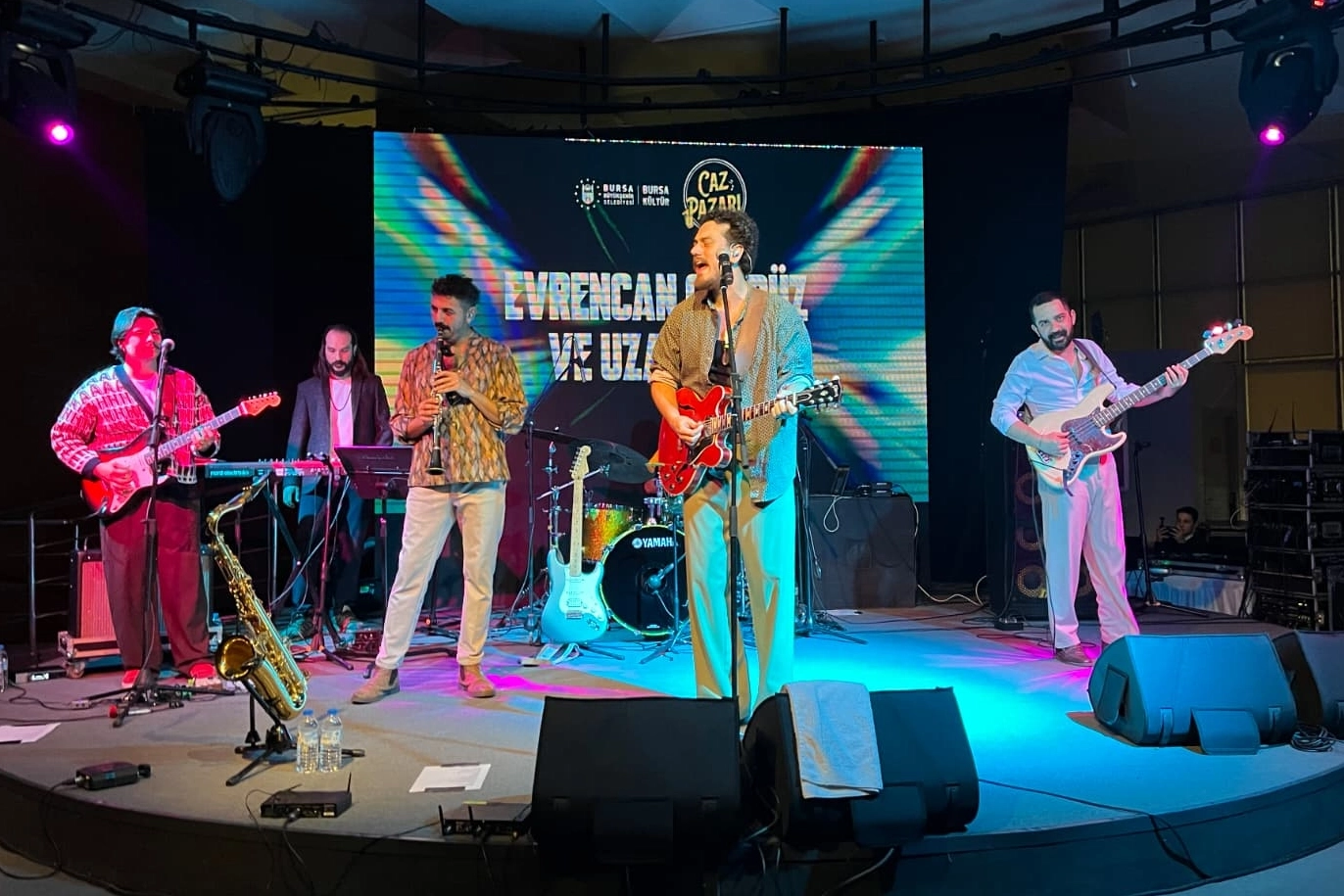 Bursa Büyükşehir Belediyesi’nin düzenlediği ‘Caz Pazarı Konserleri’ kapsamında sahne alan Evrencan Gündüz ve Uzaylılar, blues, rock ve cazın iç içe geçtiği repertuvarlarıyla müzikseverlerden büyük beğeni topladı.