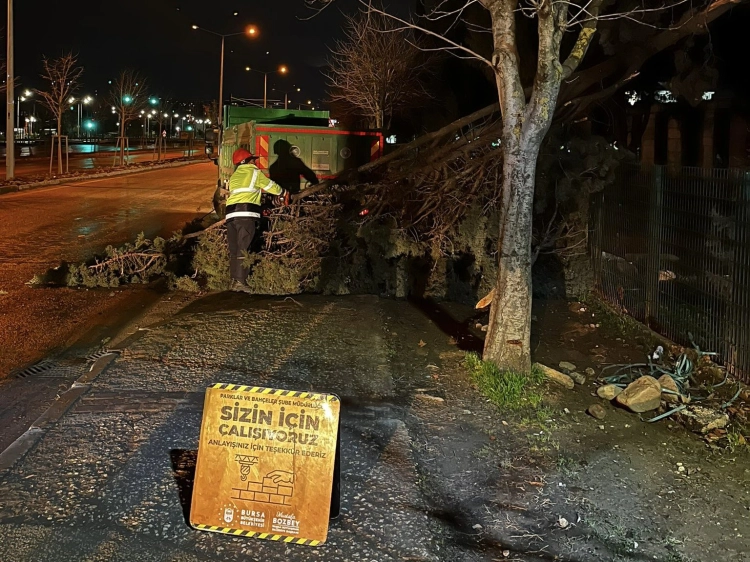 Bursa Büyükşehir Belediyesi, kent genelinde etkili olan kuvvetli lodos nedeniyle oluşan olumsuzluklara karşı ekiplerin sahada olduğunu ve 42 ihbara müdahale edildiğini açıkladı.