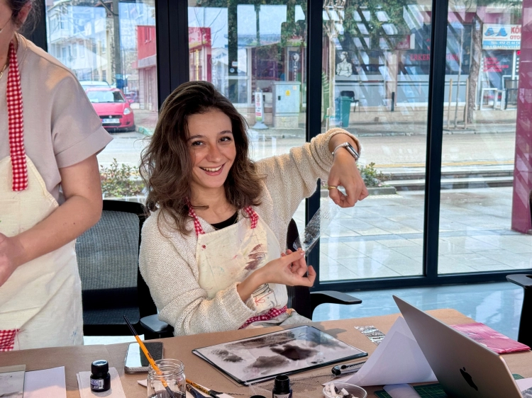 BURSA (İGFA) - Bursa Nilüfer Belediyesi’nin düzenlediği “Depoda Sanat Var” programı, sanatseverleri deneysel üretim süreçleri ile buluşturdu. Program kapsamında sanatçı Burcu Güven yürütücülüğünde gerçekleşen “Şeffaf Katmanlar Atölyesi”nde katılımcılar, şeffaf bant ve mürekkep kullanarak üretim yaptı.
