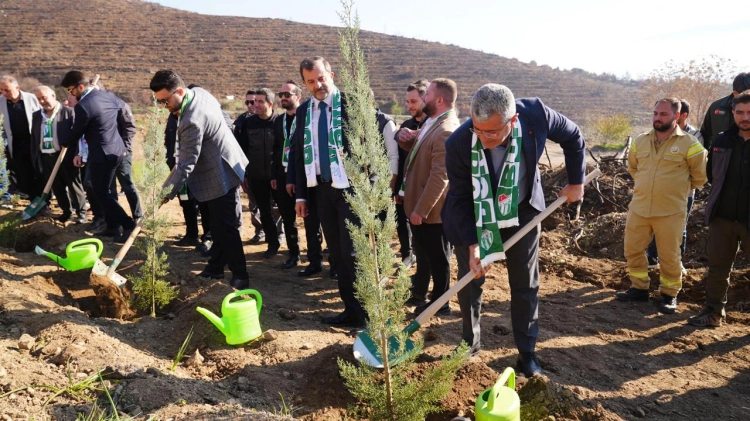 Bursaspor yönetimi ve futbolcuları Gürsu’da fidan dikti
