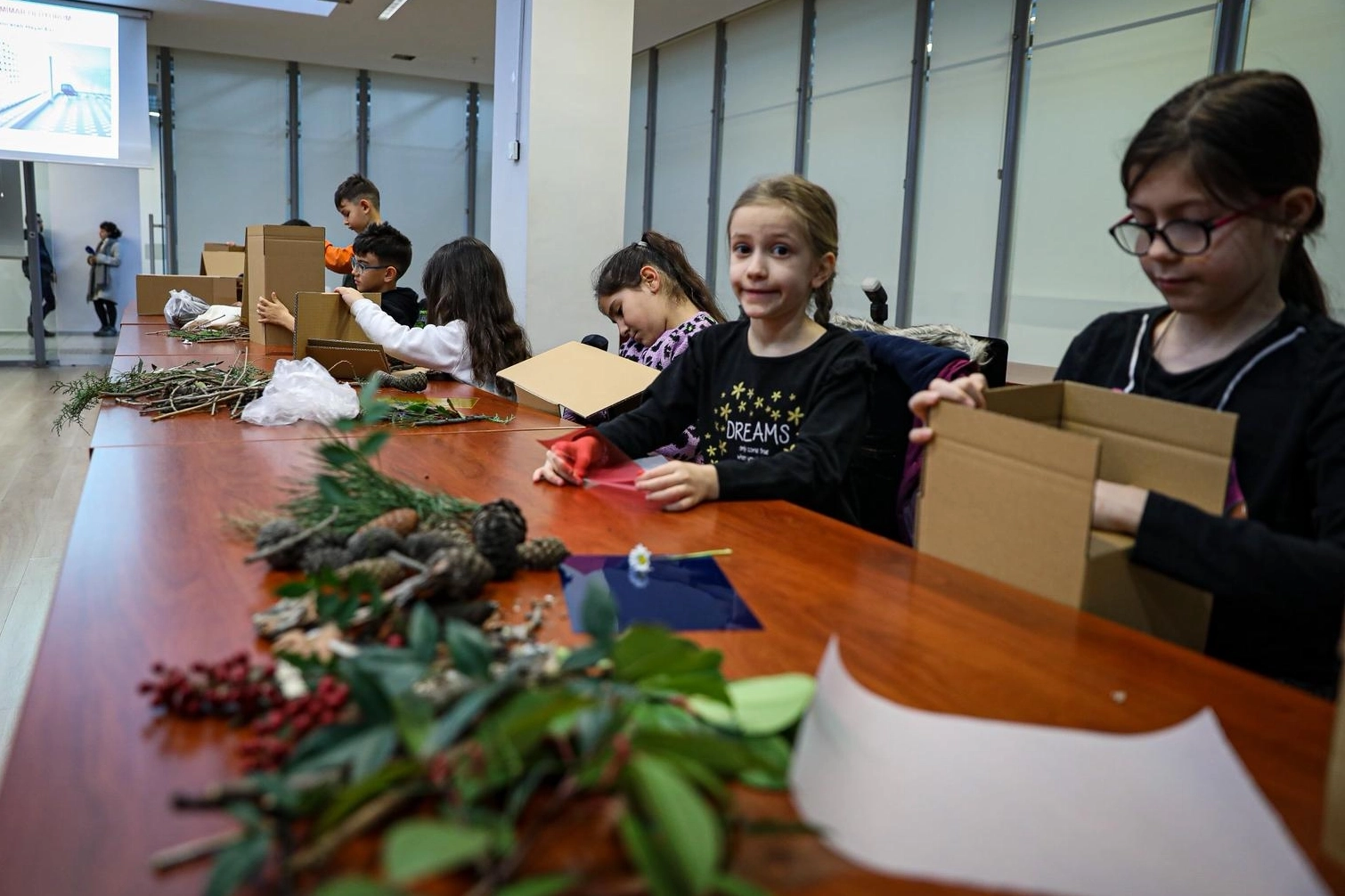 Kendi özgün maketlerini üreten çocuklar, ağaç kabukları, dallar, kozalaklar, yapraklar ve çakıl taşları gibi doğal malzemeleri kullanarak üretimlerini zenginleştirdi. Ayrıca seçtikleri mini figürlerle tasarladıkları mekânların hikâyelerini de anlattılar.