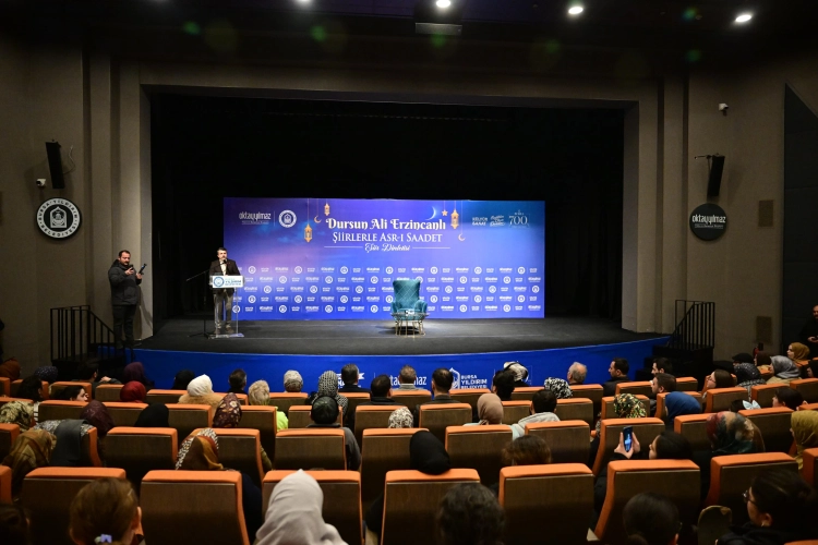 Barış Manço Kültür Merkezi’nde düzenlenen ‘Şiirlerle Asr-ı Sadet’ şiir dinletisine, ev sahibi Yıldırım Belediye Başkanı Oktay Yılmaz’ın yanı sıra AK Parti Yıldırım İlçe Başkanı İrfan Akkaya ve vatandaşlar katıldı. Bursalıların yoğun ilgi gösterdiği programda, Peygamber Efendimize (S.A.V.) atfedilen naat-ı şerifleri seslendirmesiyle tanınan Dursun Ali Erzincanlı birbirinden çok sevilen şiirlerini seslendirdi. Şiirleri ve sohbeti ile katılımcılara duygu dolu anlar yaşatan Erzincanlı, Ramazan ayının ruhunu, iklimini yaşatan etkinlikler düzenleyen Yıldırım Belediyesi ve Başkan Oktay Yılmaz’a teşekkür etti.