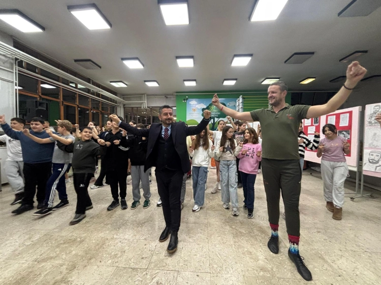 Ekol Koleji’nin 15 öğrencisinden oluşan kafilesi, modern takım elbiseleriyle hazırladıkları Zeybek gösterisi ile büyük alkış aldı; ardından Zeybek figürlerini Karadağ’lı -Montenegro’lu yaşıtlarına öğretti. Karadağ’lı -Montenegro’lu öğrenciler de kendi halk oyunlarını sergileyerek çocuklarımızı dans halkasına dahil etti.