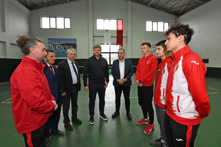 Genç sporculara öğütlerde bulunan Ertuğrul Sağlam, başarının disiplinli antrenman ve eğitim hayatıyla birlikte yürütülmesiyle mümkün olduğunu söyledi.