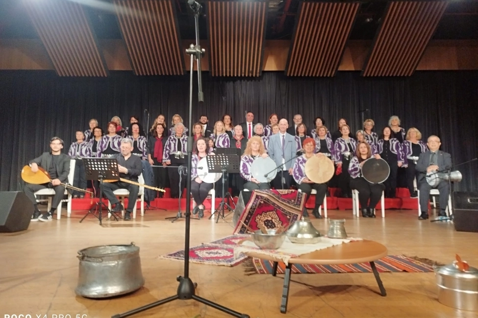 ‎Bursanın ulusaldaki kültür sanat yüzü şef müzik ve halkbilimi uzmanı Erdinç Ertüzün'ün yonetiminde Azeri Yandırdın kalbimi türküsüyle başlayan müthiş gecede zeybekler horonlar halaylarla Neşet Ertaş' tan Aşık Veysel 'e Anadolu'nun dört bir yanından türküler yorumlayan topluluk ses ve saz sanatçıları salonu dolduran seyircilerin yoğun ilgi ve talebiyle konseri iki defa uzatmak zorunda kaldı.