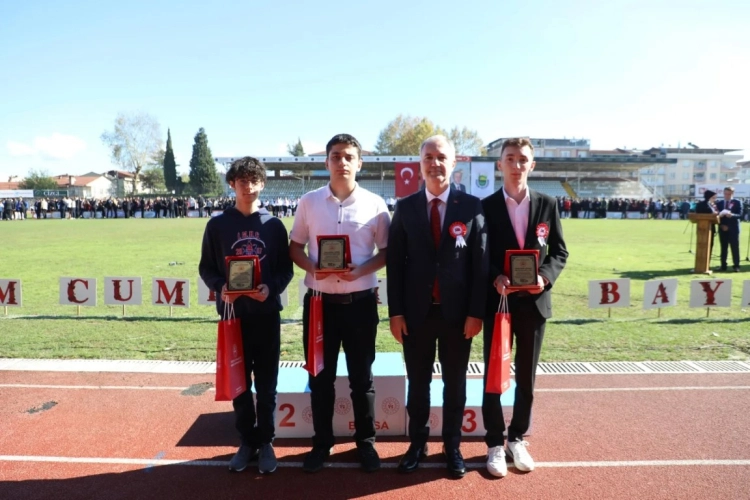 Saygı duruşu ve İstiklal Marşının okunmasının ardından Kaymakam Eren Arslan kürsüye çıkarak günün anlam ve önemine ilişkin bir konuşma yaptı. Konuşmanın ardından ise günün anlam ve önemine ilişkin şiirlerin okunmasıyla tören devam etti. İnegöl Belediyesi Halk Dansları Ekibinin gösterileri törene renk katarken, Tarihi İnegöl Mehteri de marşlarıyla coşkuya coşku kattı. Törende öğrencilerin hazırladığı çeşitli gösteriler beğeniyle izlendi ve ayakta alkışlandı. 29 Ekim Cumhuriyet Bayramı nedeniyle düzenlenen çeşitli yarışmalarda dereceye giren öğrencilere ödülleri de tören alanında takdim edildi.