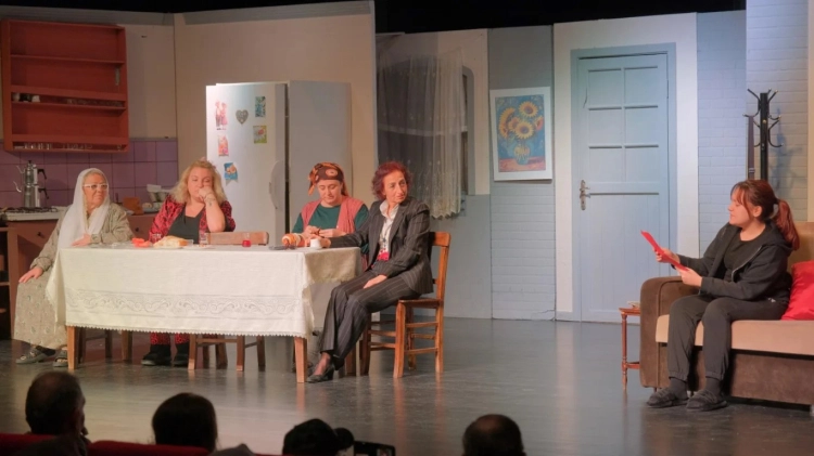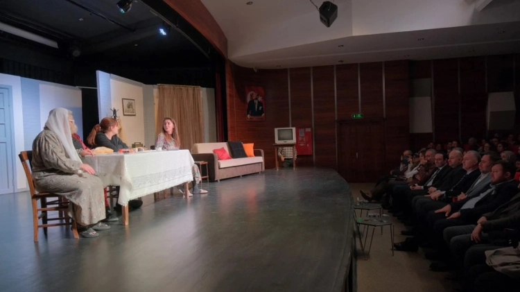 BURSA (İGFA) - İnegöl Belediyesi Şehir Tiyatrosunun 22’nci oyunu olarak sahneye taşınan Tuncer Cücenoğlu’nun yazıp Volkan Derman’ın yönettiği “Kadın Sığınağı” isimli 2 perdelik dram türündeki oyun, Çarşamba akşamı yapılan gala gösteriminin ardından Cuma akşamı ilk kez seyirciyle buluştu. 11 kişilik güçlü bir kadroyla sanatseverlerin beğenisine sunulan oyun, salonu dolduran vatandaşlardan tam not aldı.