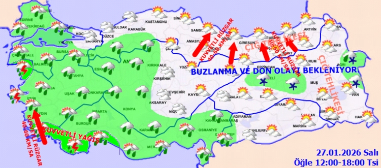 ANKARA (İGFA) - Meteoroloji Genel Müdürlüğü, 27 Ocak Salı gününe ilişkin hava tahmin raporunu yayımladı.