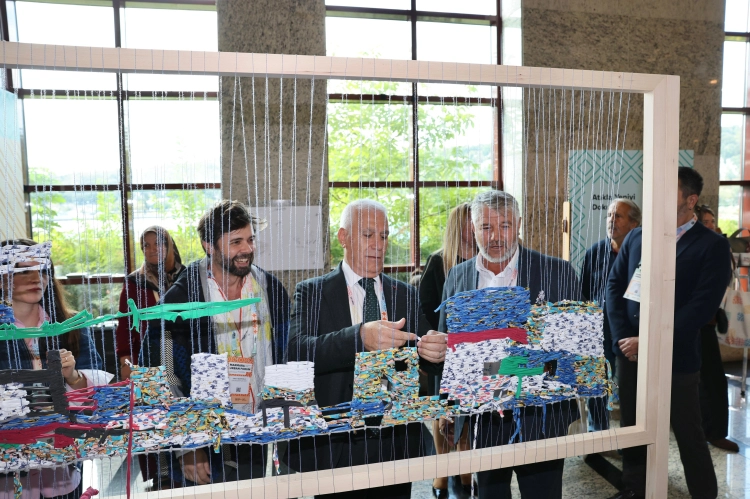 Aynı zamanda Bursa Büyükşehir Belediye Başkanı olan Birlik Başkanı Mustafa Bozbey, atıkların sanat eserine dönüştürüldüğü sergiyi gezerek çalışma hakkında yetkililerden bilgi aldı.