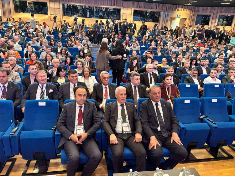 Marmara Belediyeler Birliği Başkanı ve Bursa Büyükşehir Belediye Başkanı Mustafa Bozbey:” Gönül isterdi ki İstanbul Büyükşehir Belediye Başkanımız Ekrem İmamoğlu ve çalışma arkadaşlarıda bu salonda olsunlar. Onların cezaevlerinde değil bugün burada bizimle birlikte olmaları en büyük arzumuzdur. Önderimiz Mustafa Kemal Atatürk’ün dediği gibi Umutsuz durumlar yoktur umutsuz insanlar vardır. Ben umudumu asla yitirmedim kesinlikle bu durumu atlatacağız. Başta İBB Başkanımız Ekrem İmamoğlu olmak üzere tüm başkanlarımıza. Bu salondan selam, ayrıca Filistin’de Gazze’de yaşanan insanlık dramı ve insanlık suçları hepimizin vicdanında derin yaralar açmaktadır. Adaleti, barışı ve insanlığın bir an önce dünyada hakim olmasını birlikte arzu ediyoruz. Oradaki çoluk çocuk tüm insanları öncelik olarak görmekteyiz. İnsan olma haklarının onlara verilmesi gerekmektedir. Küresel zabıt filosunun da bildiğiniz gibi taşıdığı dayanışma mesajı tüm dünyaya ayrıca insanlık dersi vermektedir. İnsanlığın ortak vicdanı bu kararlılığı mutlaka gelecektir. Buna inanıyoruz. Filistin'deki o mezarlığın altında inleyen o kardeşlerimize bu salondan selam gönderiyoruz. Aramızda Filistin’den gelen misafirlerimiz de var. Onlara da bu olumsuz koşullara rağmen buraya geldikleri için teşekkür ediyorum.