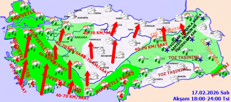 Orta ve Doğu Karadeniz'in iç kesimleri ile Doğu ve Güneydoğu Anadolu'nun doğusunda toz taşınımı beklendiğinden ulaşımda aksamalar, hava kalitesinde düşme çamur yağışı gibi yaşanabilecek olumsuz şartlara karşı dikkatli ve tedbirli olunması gerekmektedir.