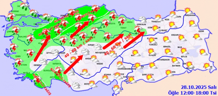 ANKARA (İGFA) - Meteoroloji Genel Müdürlüğü, 28 Ekim Salı gününe ilişkin hava tahmin raporunu yayımladı.