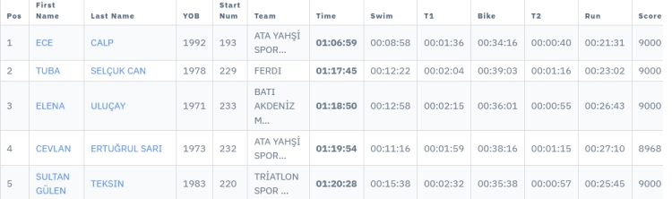 56 sporcunun yarıştığı kadınlarda ise Ata Yahşi Spor Kulübü'nden 33 yaşındaki Ece Calp 1 saat 6 dakika 59 saniyelik derece ile birincilik elde etti.
