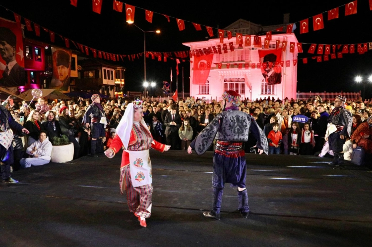 Kırmızı-beyaz renklerle dolan sahil bandında, gençler, çocuklar ve yaşlılar ellerinde bayraklarla yürüdü. Marşlar eşliğinde süren yürüyüşün ardından meydanda düzenlenen “Adımlarının İzindeyiz- Cumhuriyet Valsi” renkli görüntülere sahne oldu. Mudanyalı çiftlerin meydanda Cumhuriyet’in ritminde dans ettiği anlar, uzun süre alkışlandı. Ardından sahnelenen zeybek gösterisi coşkuyu doruğa taşıdı, izleyenlere duygusal anlar yaşattı.