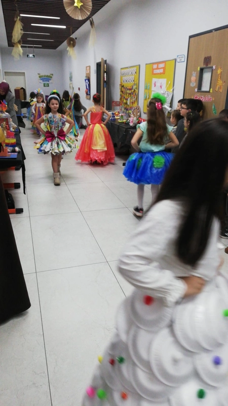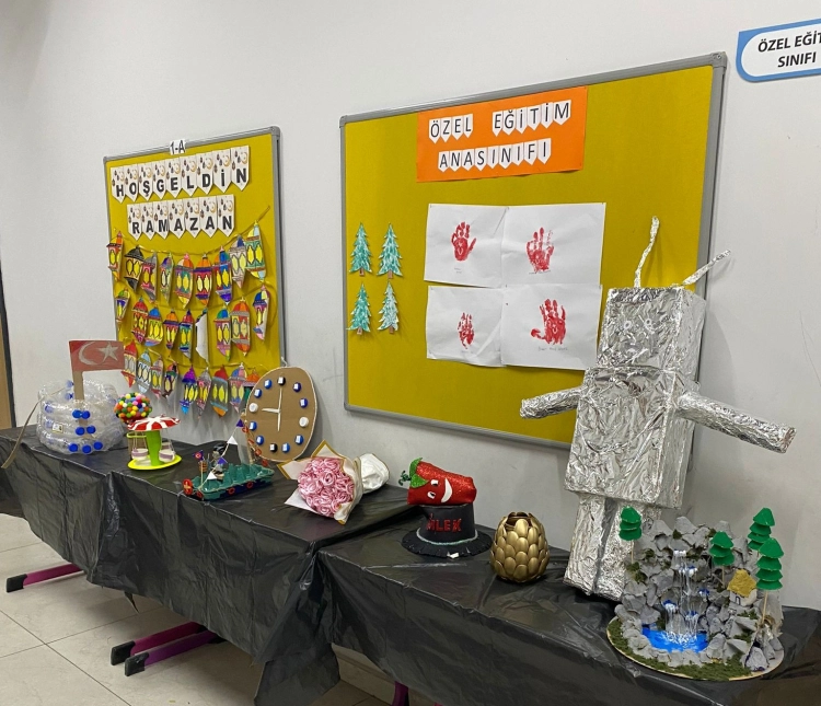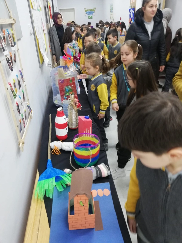 Daha sonra hazırlanan renkli kostümlerle gerçekleştirilen defile sonrasında açılan sergide öğrencilerin el emeği çalışmaları görücüye çıktı.