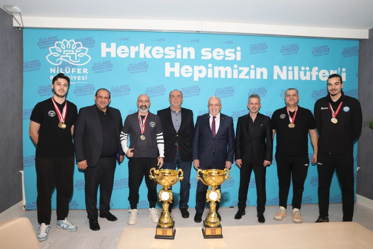 Nilüfer Belediyesi Halk Evi’ndeki başkanlık makamında gerçekleşen ziyarete; Nilüfer Belediyespor Kulübü As Başkanı Mehmet İlker Şener, kulüp yöneticileri, teknik ekip ve şampiyon sporcular katıldı.