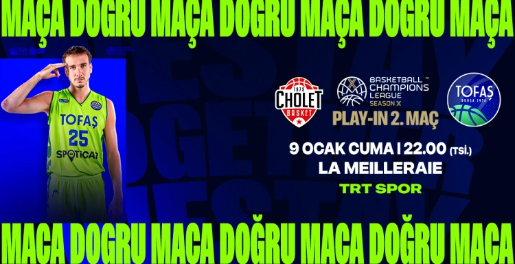 Basketbol Şampiyonlar Ligi play-in eleme turu serisinde 1-0 önde olan TOFAŞ, serinin ikinci maçı için Fransız temsilcisi Cholet Basket’e konuk oluyor. ağırlayacak. İki galibiyete ulaşan tarafın son 16 takım arasına kalacağı serinin ikinci maçı 9 Ocak Cuma günü La Meilleraie’de TSİ. 22.00’de başlayacak.