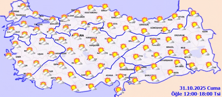 Meteoroloji'ye göre Türkiye genelinde yağış beklenmezken, kuzey, iç ve batı kesimlerde parçalı bulutlu, diğer bölgelerde az bulutlu ve açık hava hakim olacak. Sıcaklıklar mevsim normallerinin üstünde seyredecek.
